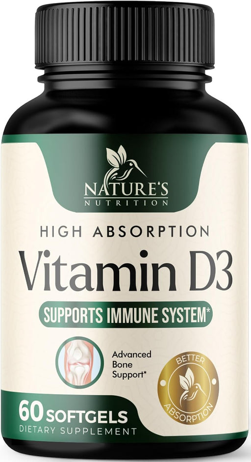 View full detailsEXTRA STRENGTH D3 VITAMIN 5000 IU: Nature’s Nutrition immune support, bone & heart support with vitamin D3 supplement provides 5000 IU (125 mc...