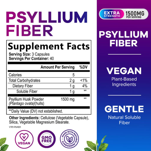 View full detailsPsyllium Husk Fiber Supplement 1500mg - Vegan Prebiotic, Soluble Fiber for Daily Digestive Health & Regularity Support, Natural Psyllium Powder Caps, Sugar-Free, Non-GMO & Gluten-Free - 120 Capsules