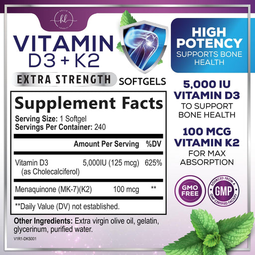 Hello Lovely!Vitamin D3 5000 IU with K2 100 mcg is a premium D3 K2 supplement designed for bone, teeth, heart, and immune support. This vitamin D3 K2 combo supp...