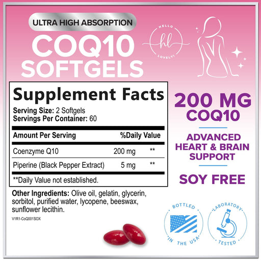 Hello Lovely!Support heart and energy with CoQ10 200mg Softgels, designed for 3X better absorption compared to standard coenzyme Q10 powders. Each serving deliv...
