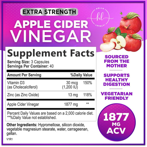 Boost your wellness with Apple Cider Vinegar Pills with Vitamin D3 & Zinc! These powerful ACV pills pack 1877mg of premium apple vinegar, surpa...