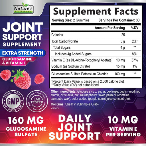 Nature's GummiesJoint Support Supplement - Extra Strength Glucosamine Gummy Supports Joints Health & Flexibility for Back, Knees, Hands - Natural Vitamin E Imm...